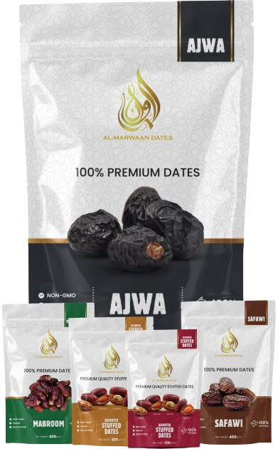 Al Marwaan Ajwa Aliya Dates are rich, soft, and naturally sweet, offering authentic taste and nutrition. Non-GMO, vegan, gluten-free, and 100% natural, they’re the perfect choice for daily nourishment.